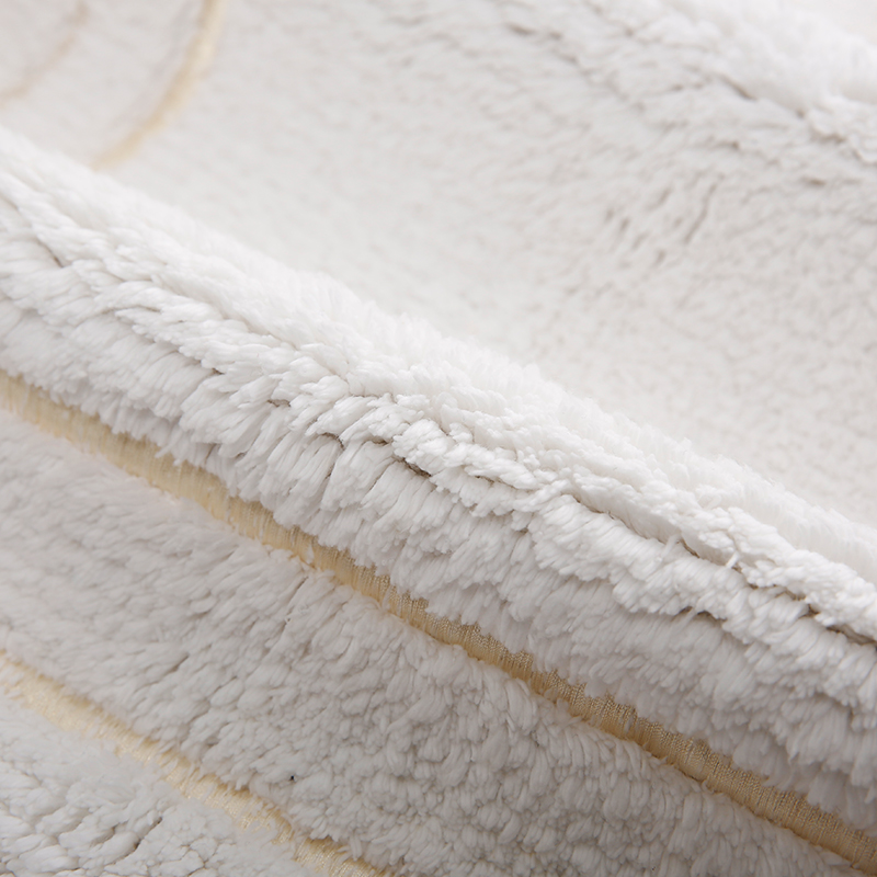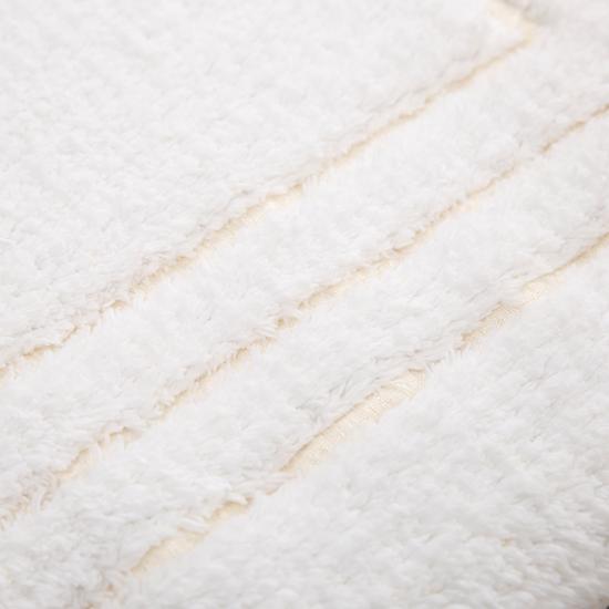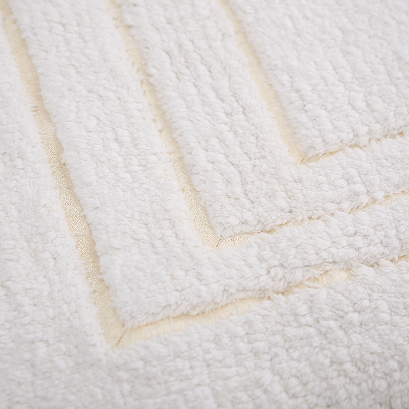 This hotel bath mat manufactured for 'Star hotel' Business Suites and you will feel light weight, and easy to clean. It can be washed by washing machine. Just using mild detergent and low setting on tumble dry is OK for the Accent bath mat.Jacquard foot print pattern white bath mat surface and anti-slip bottom,keep the bath rugs a soft touch feeling and safety, as well as, decor your cozy home.