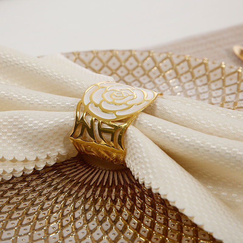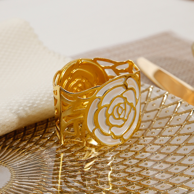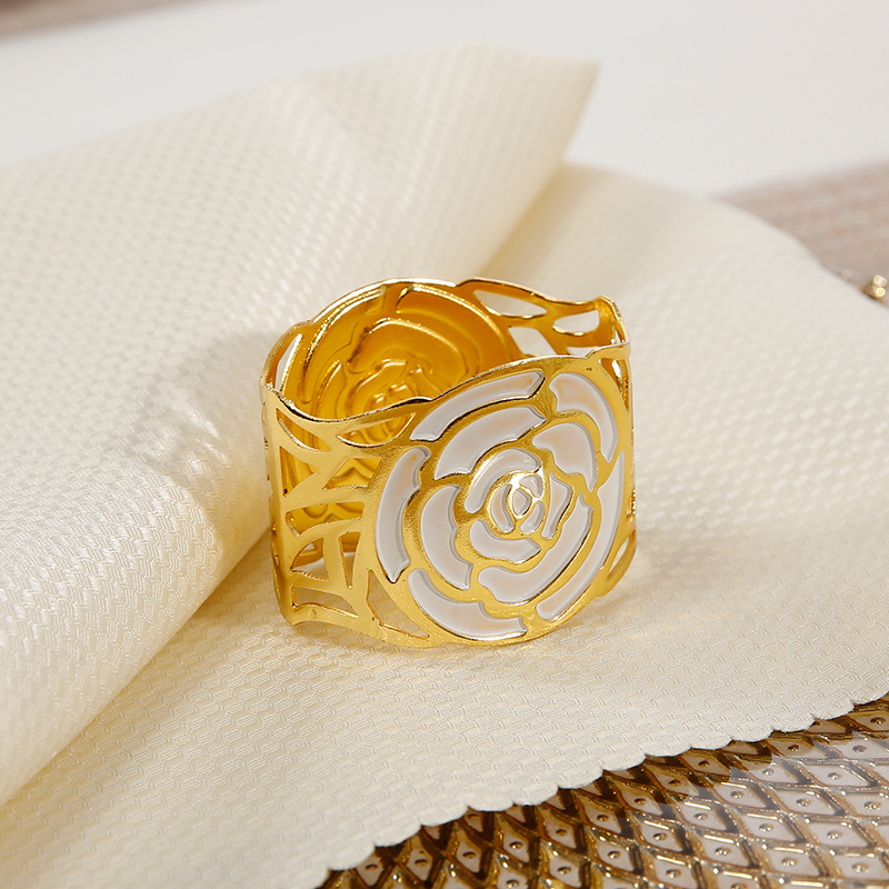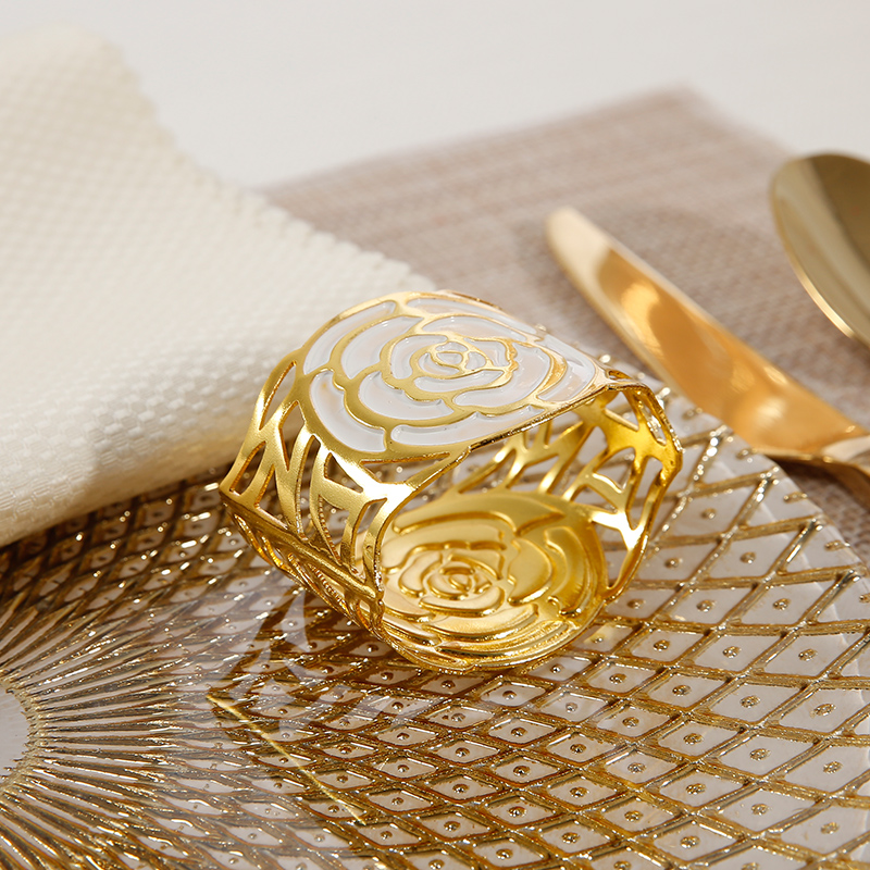 Bling Hollowed Rose Pattern Gold-and-white Serviette Rings