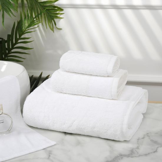 This white soft 100% combed cotton hotel towel sets includes 1 bath towel, 1 face towel and 1 hand towel. The hotel quality towel is woven with 100% ring spun cotton. Ring spun cotton not only gives your skin a softer feel, but is also very durable in nature. Lightweight towels quickly absorbs moisture. Give your body a delicate touch with our extra soft towels and give your bathroom an elegant and sophisticated look. These wash towels are perfectly machine washable and dry very fast too. They become even plusher and softer fluff after the first wash. Elegant towels you find in Hotels and Spas, Soft, durable, lightweight, and highly absorbent white towels.