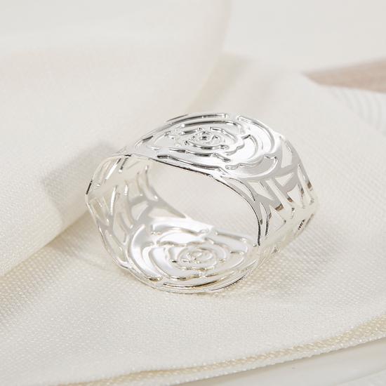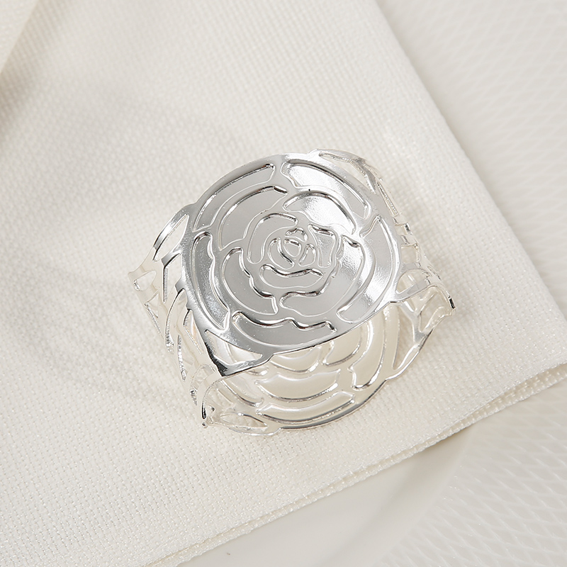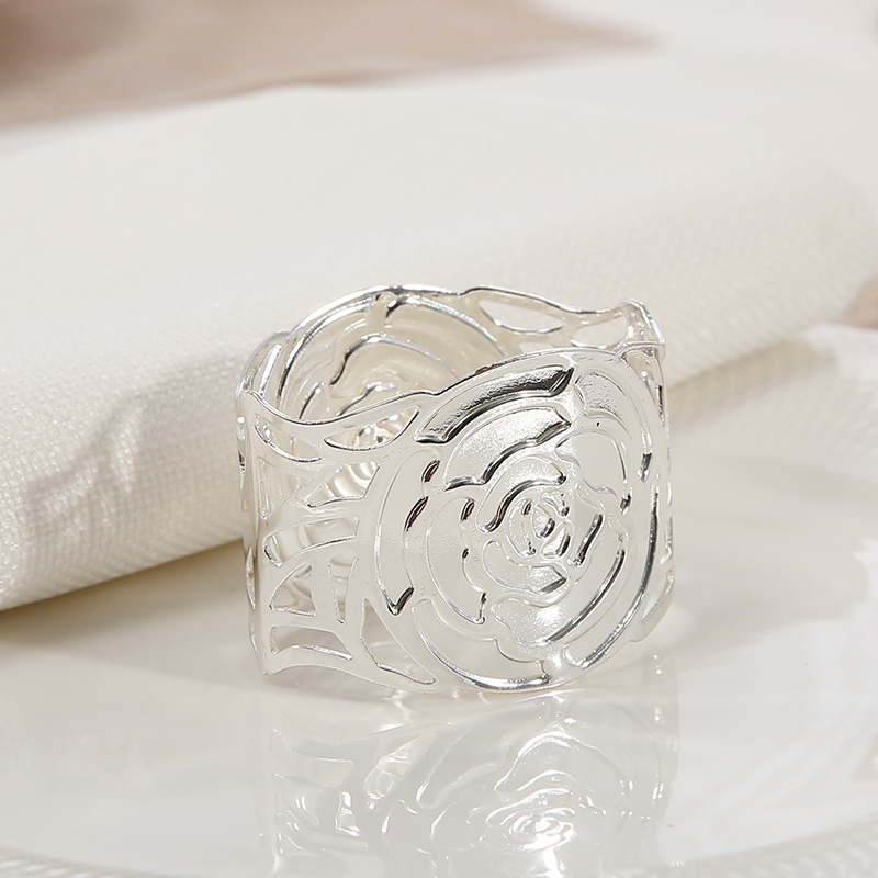 Minimalist Beauty Hollow-out Round Silvered Alumimum Napkin Rings Set