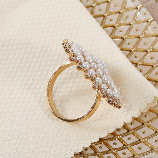 Glittering And Delicate Gold Plated Rhinestone Napkin Ring With Pearls For Weddings