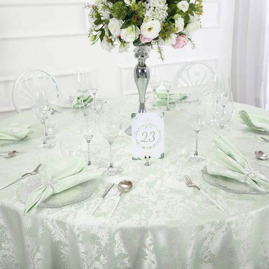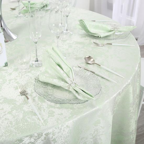 These crafted Swirl Design tablecloths are available in 15 vibrant colors and 10 sizes of rectangular and round shapes. We also offer matching and pleasing napkins. This 70’’ round table cloth fits table size with 20’’ to 58’’ round.