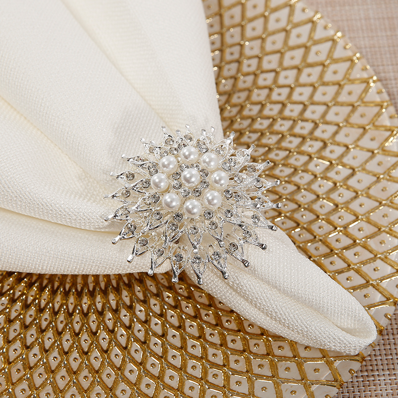 Made from premium quality aluminium material and polished in lustrous silver, these rings will never grow old; thus can be used time and time again to enhance the elegance of your dinner parties and other festive events. Our silvered rings with pearls not only add style and sophistication to your party tables but also help in conserving space on a crowded table setting. With their superior finish, attractive design and durability, our silver plated napkin rings are perfect to enhance the class of both formal and casual table settings. Pair these with our Silver accented tableware and stemware for a cohesive look, or with crisp white shades for a dramatic contrast.