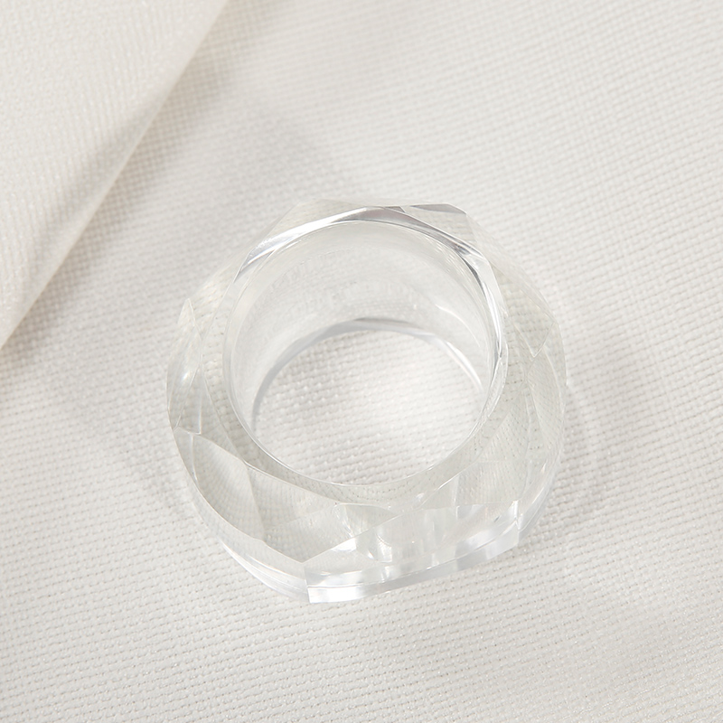 Transform your plain and lackluster napkins into glam masterpieces by embellishing with these crystalline glistening gems. Gloss and Clarity of fine quality acrylic rings will take your table settings to the next level of elite elevation. Besides being highly elegant, these simple but not easy napkin rings are extremely useful. Give your dining and party tables a sense of organization with these lovely loops.
