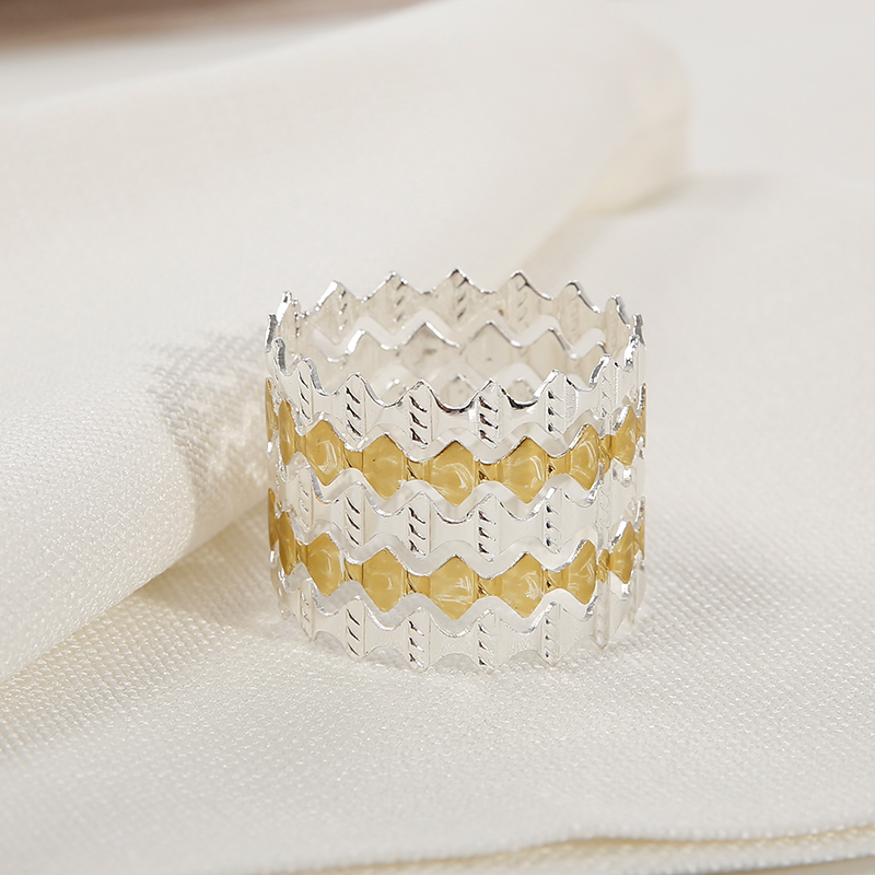 Sparkle your dining tables and startle your guests with these shimmering beauties. Our plated round napkin rings accented with handcrafted hammered design are an ideal choice to add a hint of elegance and style to your dining tables. The seamless luster and impeccable sheen of metallic finish polish imparts a lightly luxury look and feel to these glimmering table decor. These unique design Napkin Rings can be paired with crisp white napkins for an elegant look, or with our sequin accented napkins, satin napkins, velvet napkins, and metallic foil paper napkins for your place settings and tablescapes.