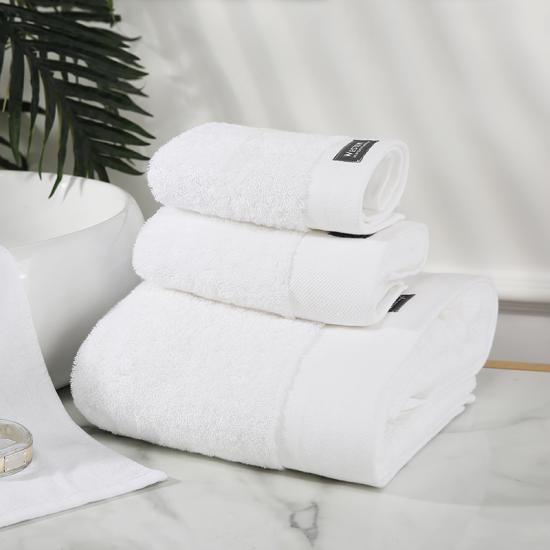 This white soft 100% cotton hotel towel sets includes 1 bath towel, 1 face towel and 1 hand towel. The hotel quality towel is woven with 100% ring spun cotton. Ring spun cotton not only gives your skin a softer feel, but is also very durable in nature. Lightweight towels quickly absorbs moisture. Give your body a delicate touch with our extra soft towels and give your bathroom an elegant and sophisticated look. These wash towels are perfectly machine washable and dry very fast too. They become even plusher and softer fluff after the first wash. Elegant towels you find in Hotels and Spas, Soft, durable, lightweight, and highly absorbent white towels.