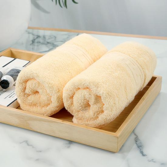 This bathroom towel gift sets are made of premium cotton, providing you with a comfortable touch and complete water absorption.These 16s ivory yellow color special satin towel sets provide a luxurious bathroom design to enhance your bathing design. Soft, super absorbent, double-stitched edges on all edges for extended life